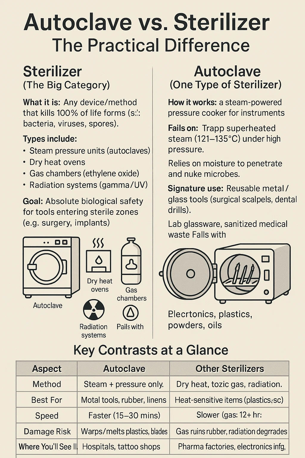 What it is: Any device/method that kills 100% of life forms (bacteria, viruses, spores).
