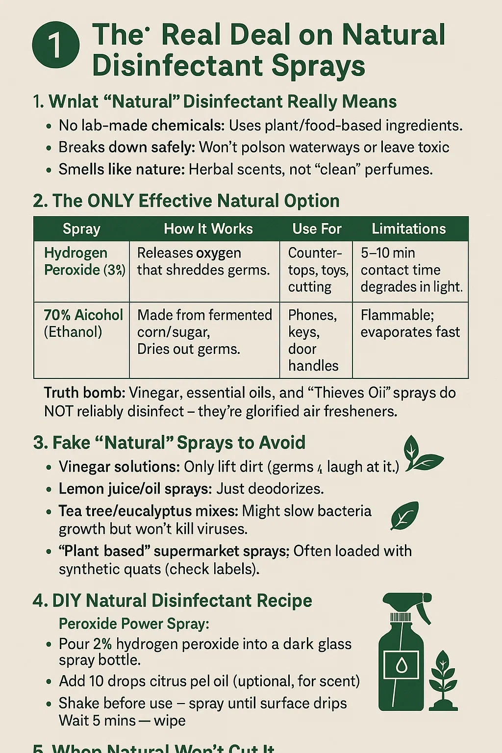 ■Truth bomb: Vinegar, essential oils, and "Thieves Oil" sprays do NOT reliably disinfect – they’re glorified air fresheners.